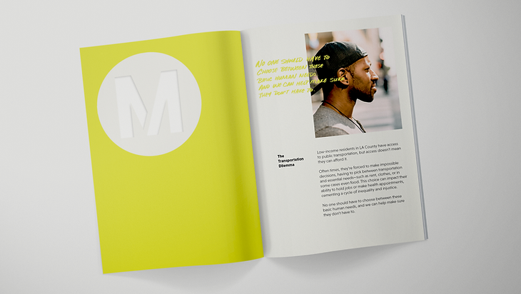 We raised the voices of the people often forgotten about, designing the brochure to highligh the stories, lives, and vignettes of the riders of the LA Metro. Bringing forward the people often looked over and forgotten about.